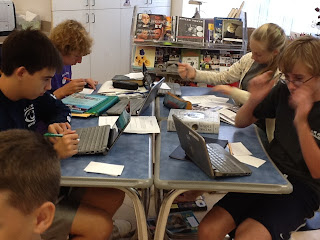 Students in grade 8 are researching topics related to social justice or rather injustice. They are considering the questions: How can learning about the past help us make just and fair decisions in the future? What secrets can we uncover about the past? How can I make a difference in the pursuit of fairness? The topics range from child soldiers to domestic abuse as students pursue topics of their interests and curiosity. Right now they are furiously locating books, databases, and websites as they take notes to report their findings. Check out the pictures below to see students at research!